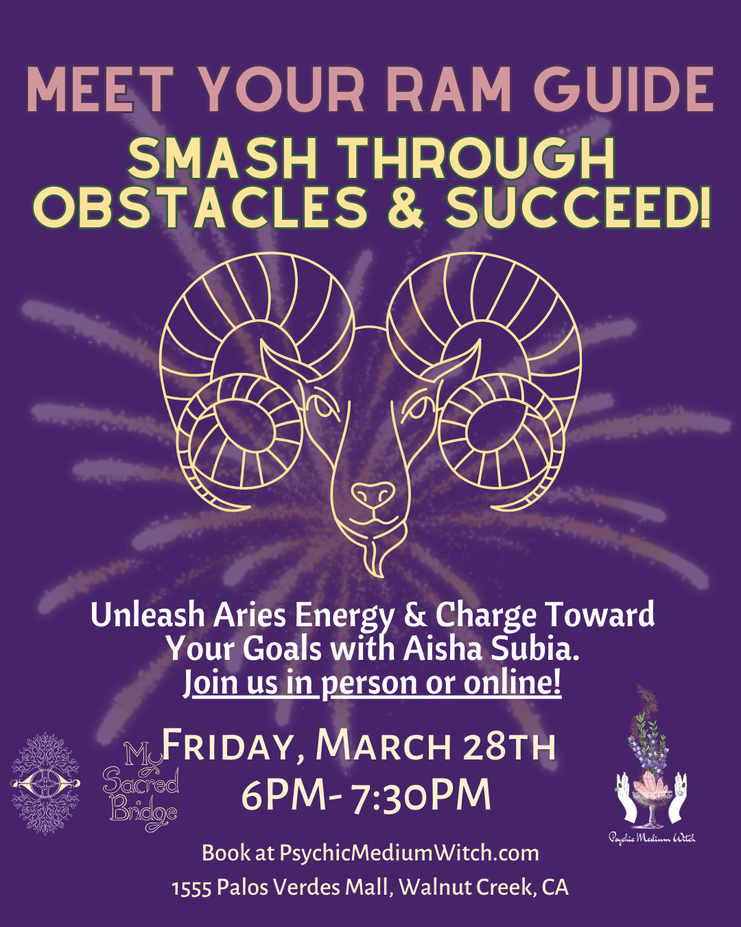 This event is hybrid on Zoom and in person at Psychic Medium Witch, 1555 Palos Verdes Mall, Walnut Creek, CA
